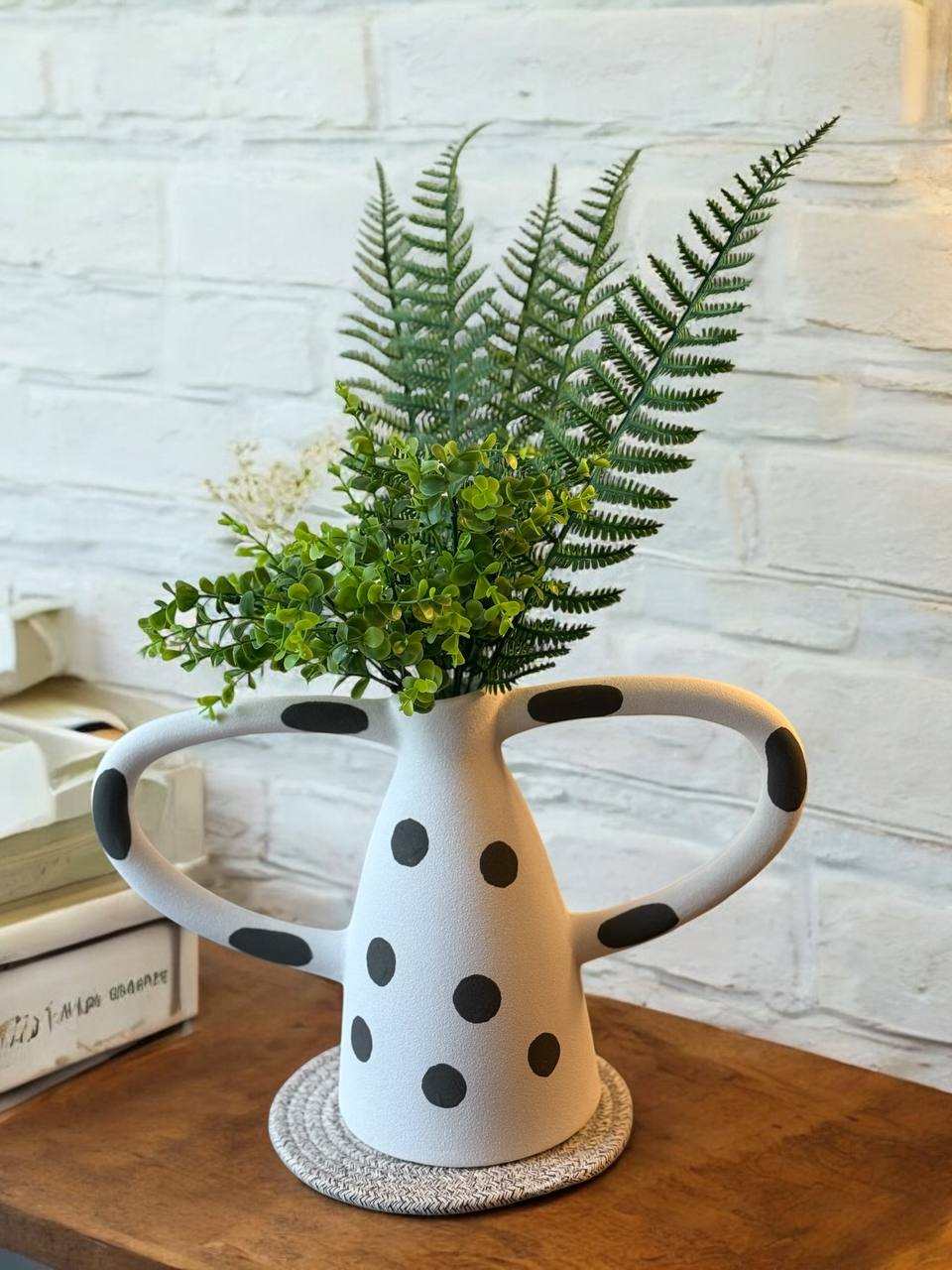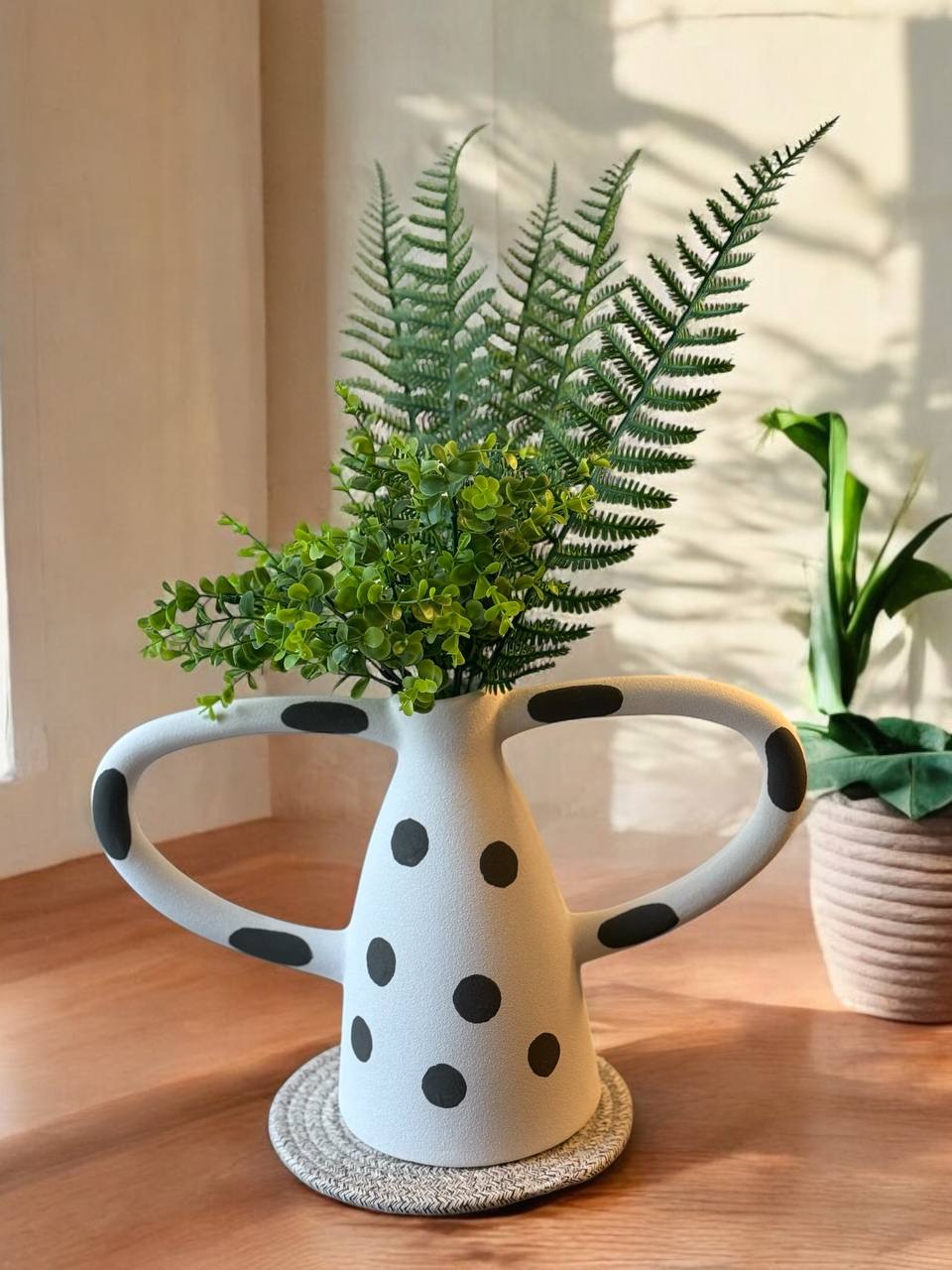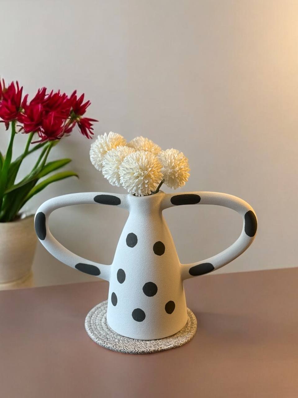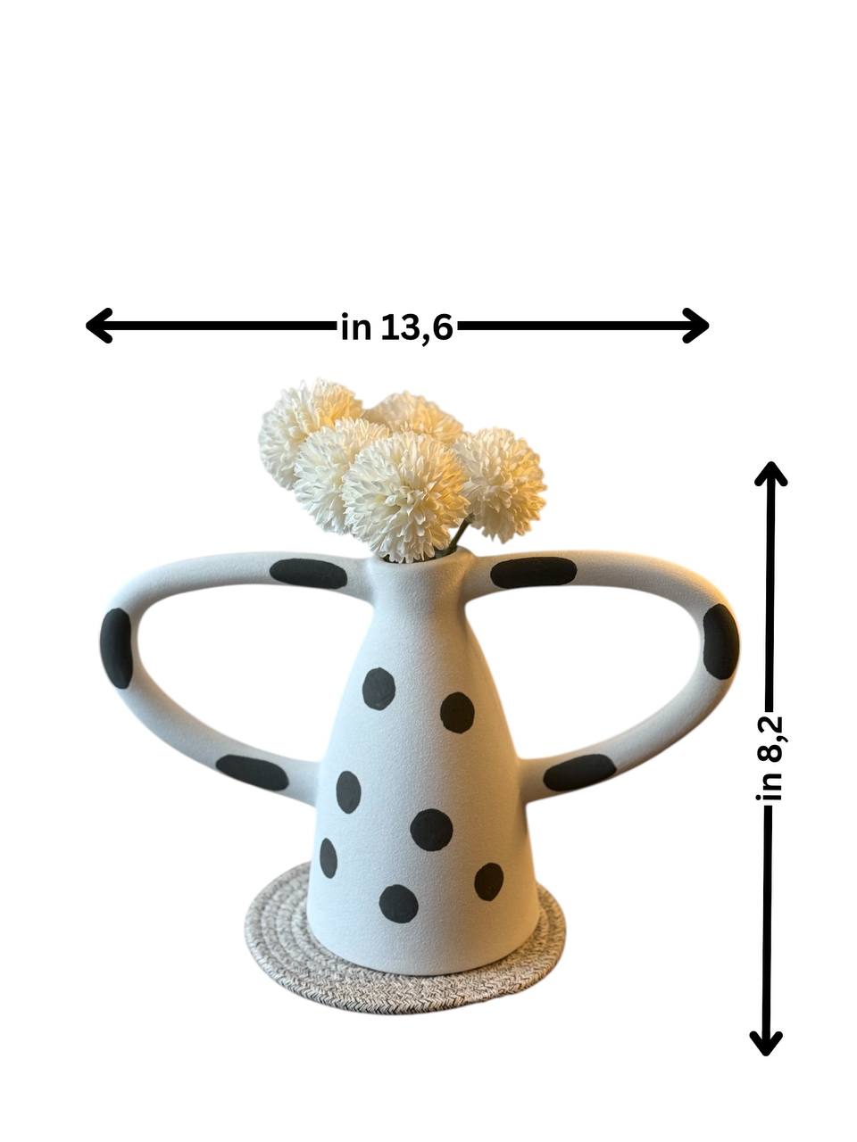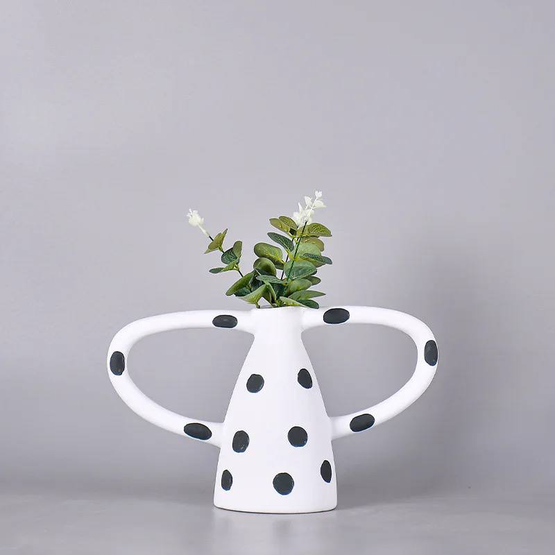 Creative ceramic vase Black and white wave dot spots abstract irregular ceramic crafts handle Flower vase Home Decoration
