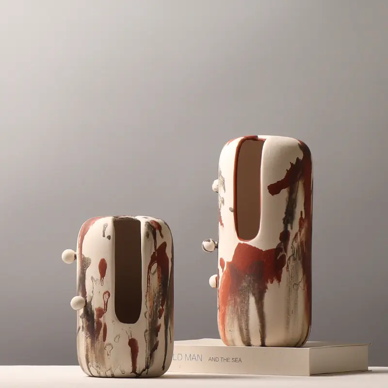 Creative ceramic vase Black and white wave dot spots abstract irregular ceramic crafts handle Flower vase Home Decoration