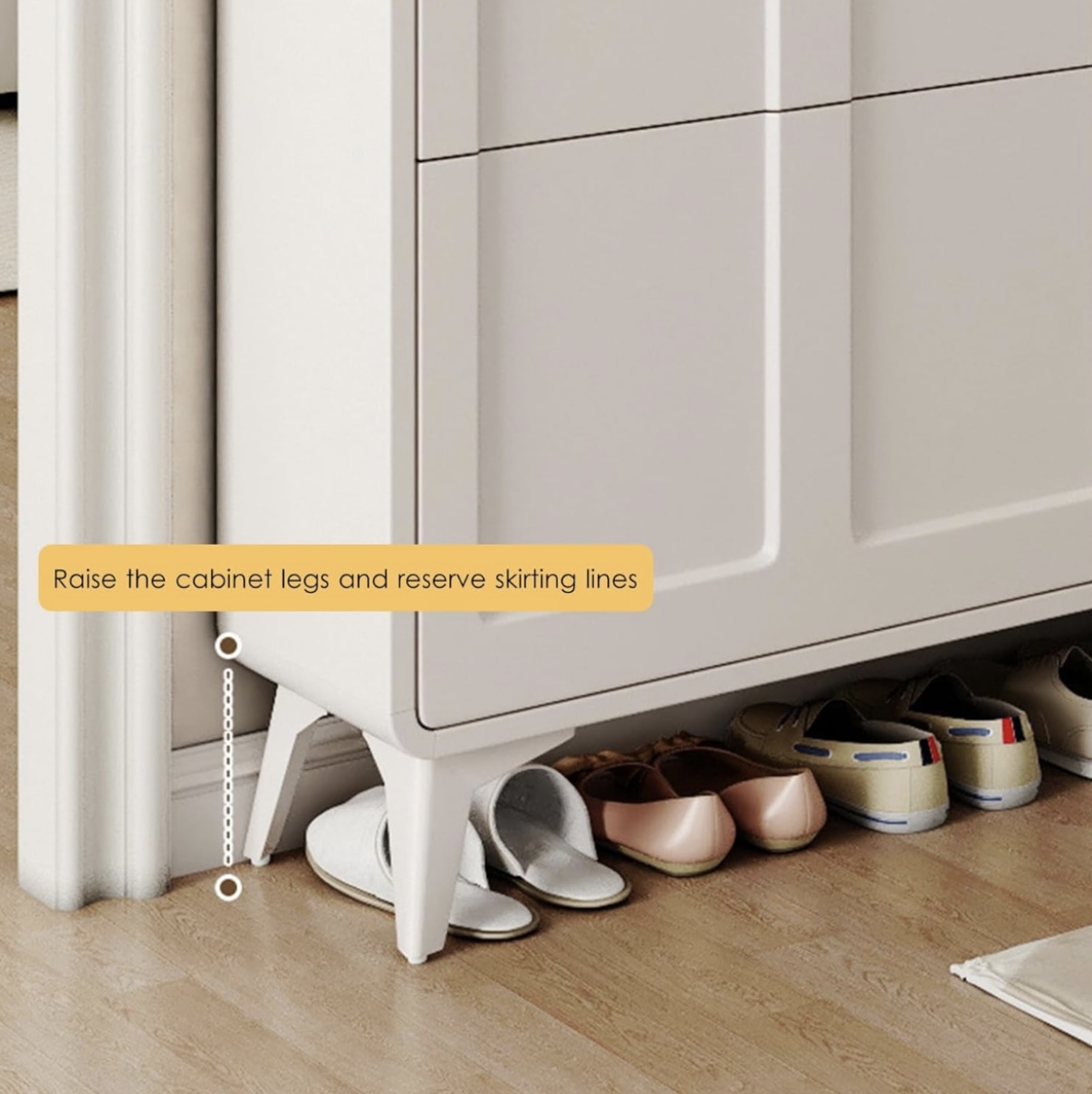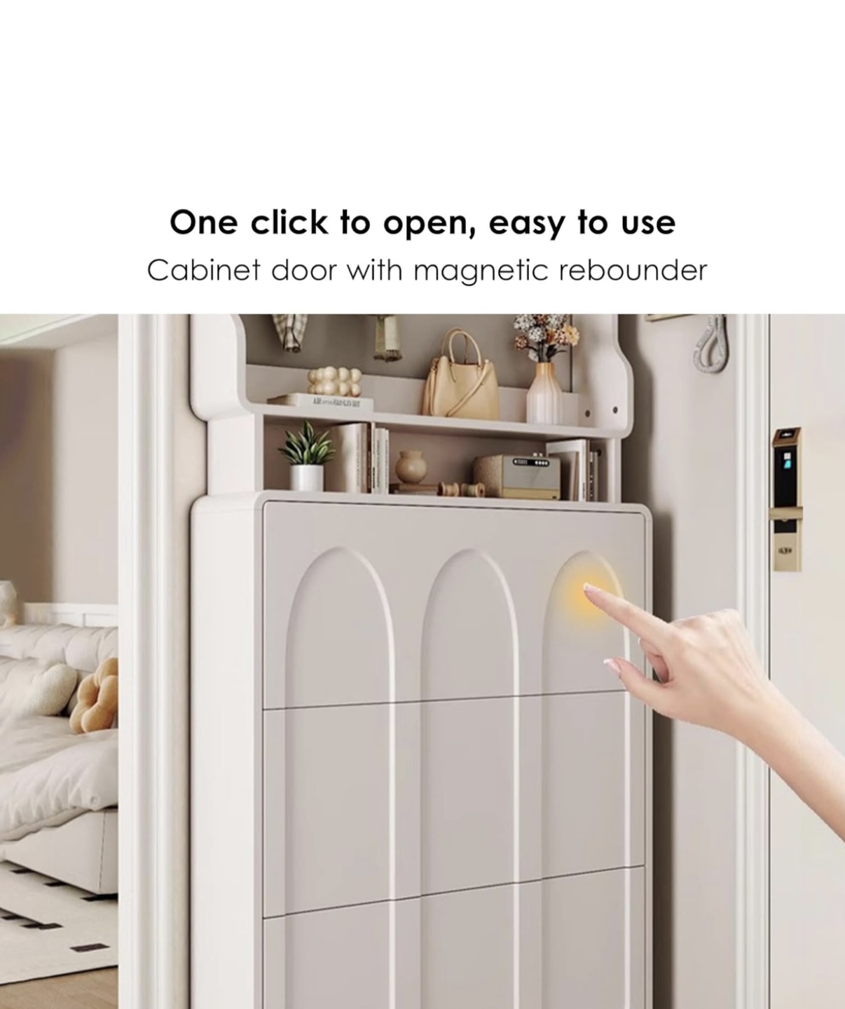 Transform your entryway with this sophisticated and space-saving shoe cabinet that blends functionality with modern luxury. Designed for both style and organization, this sleek piece features a foldable, high-capacity shoe rack that neatly stores multiple pairs while maintaining a clutter-free look. The upper section includes a built-in coat rack with elegant hooks and a hanging rod, perfect for organizing coats, hats, and accessories. A compact shelf provides additional space for decorative items, keys, or daily essentials. The closed cabinet design keeps shoes dust-free, while an open-bottom area offers convenient storage for frequently used footwear. Crafted from high-quality materials in a timeless neutral finish, this piece complements any interior while enhancing both practicality and sophistication. Ideal for modern homes, apartments, and small spaces, this shoe cabinet is the perfect blend of luxury and smart organization.