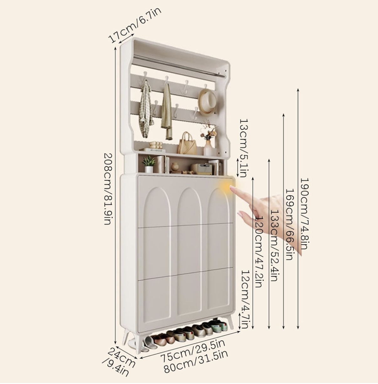 Luxury Multifunctional Shoe Cabinet with Coat Rack-Space -Saving Elegance