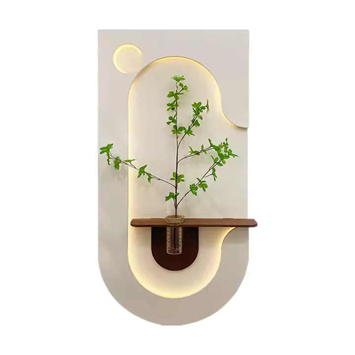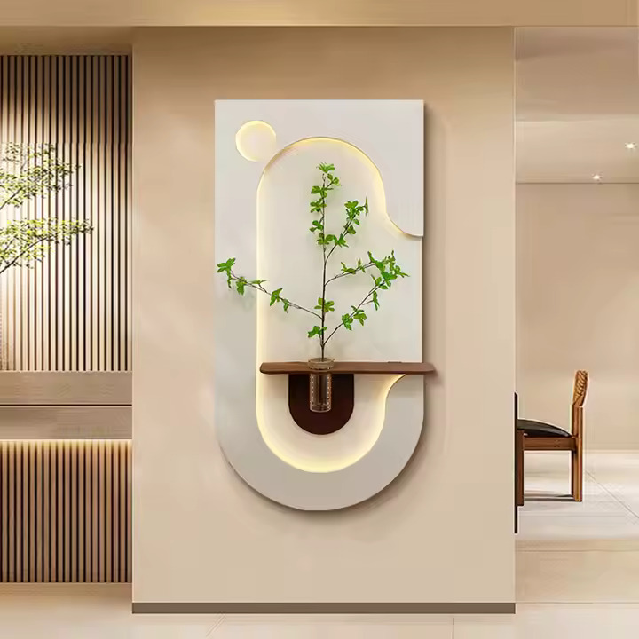 “Modern Glow: Illuminated Wall Art with Natural Accents”