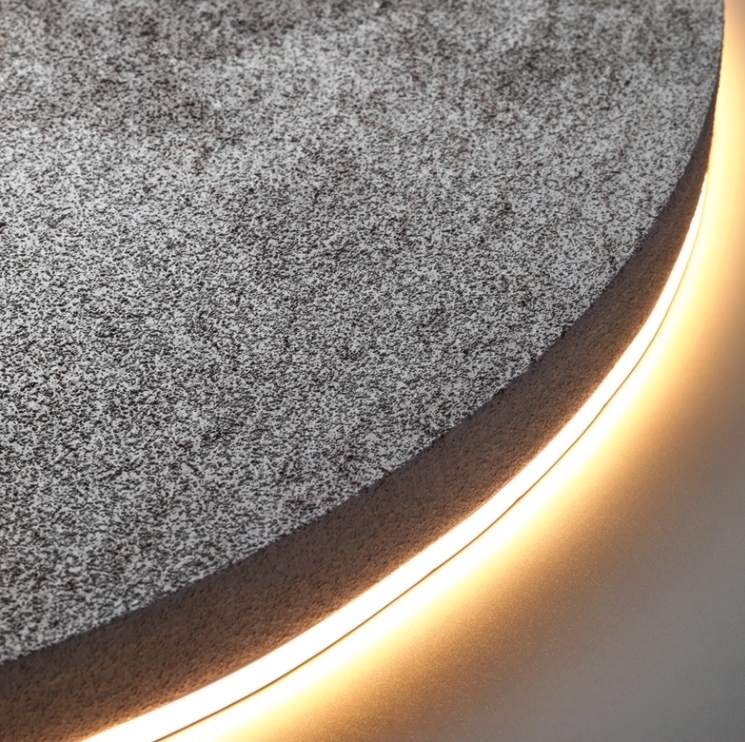 • LED lighting embedded behind the circular design for a soft, ambient glow.