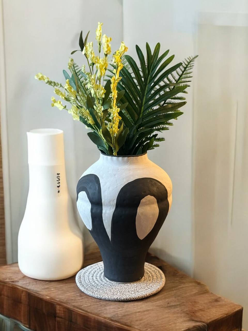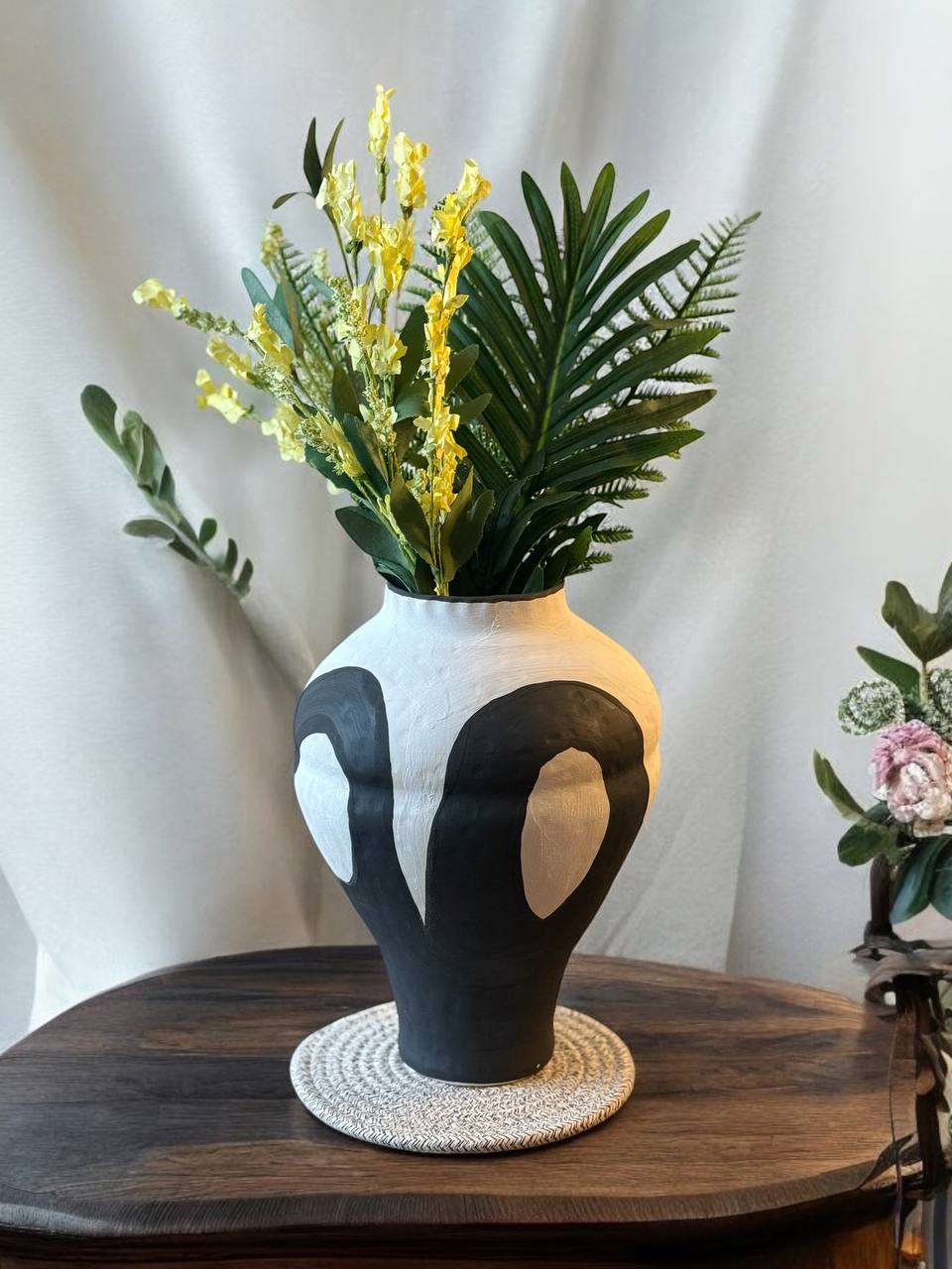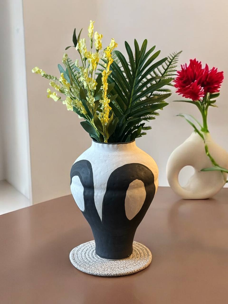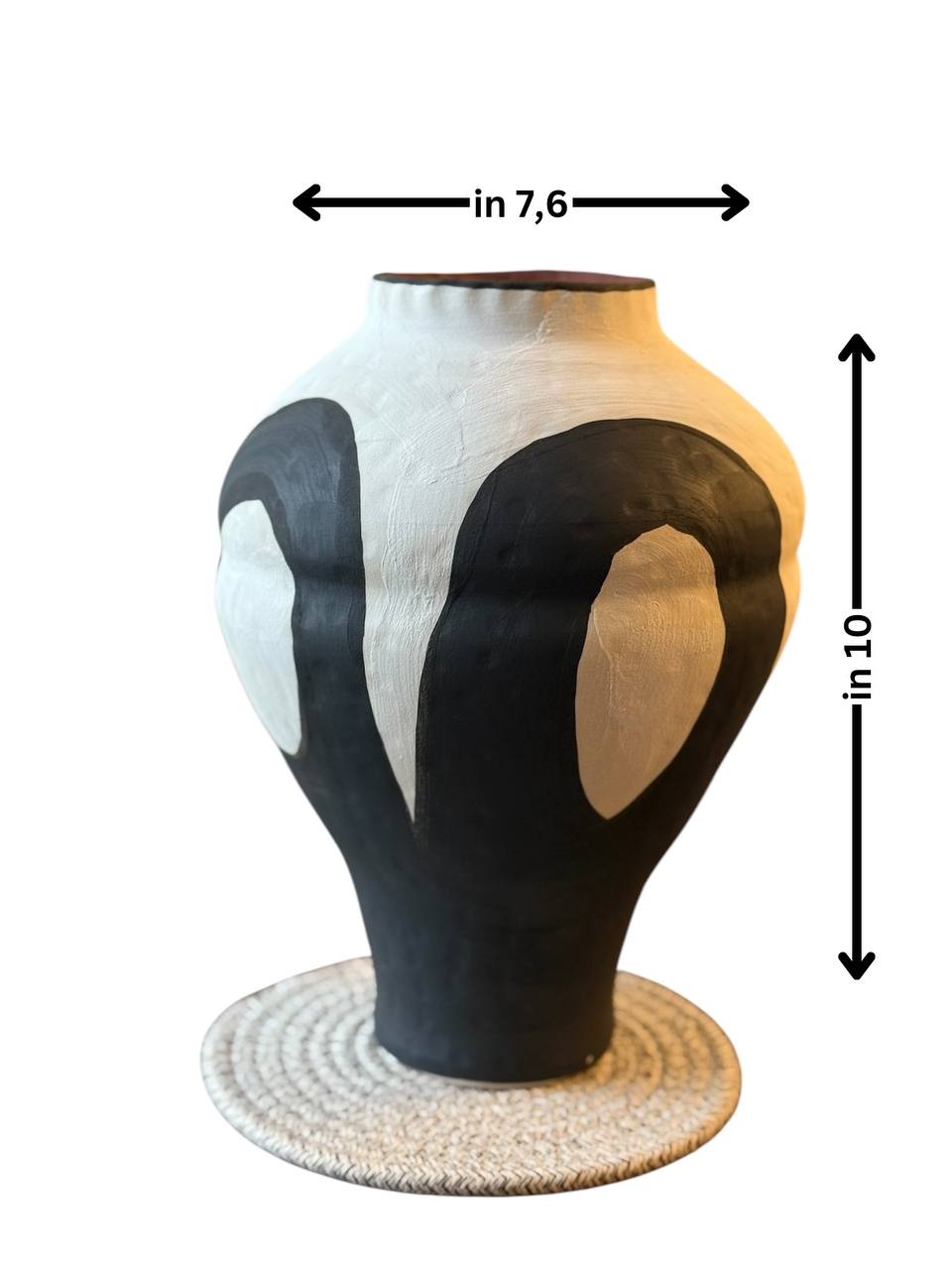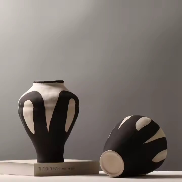 Creative ceramic vase Black and white wave dot spots abstract irregular ceramic crafts handle Flower vase Home Decoration