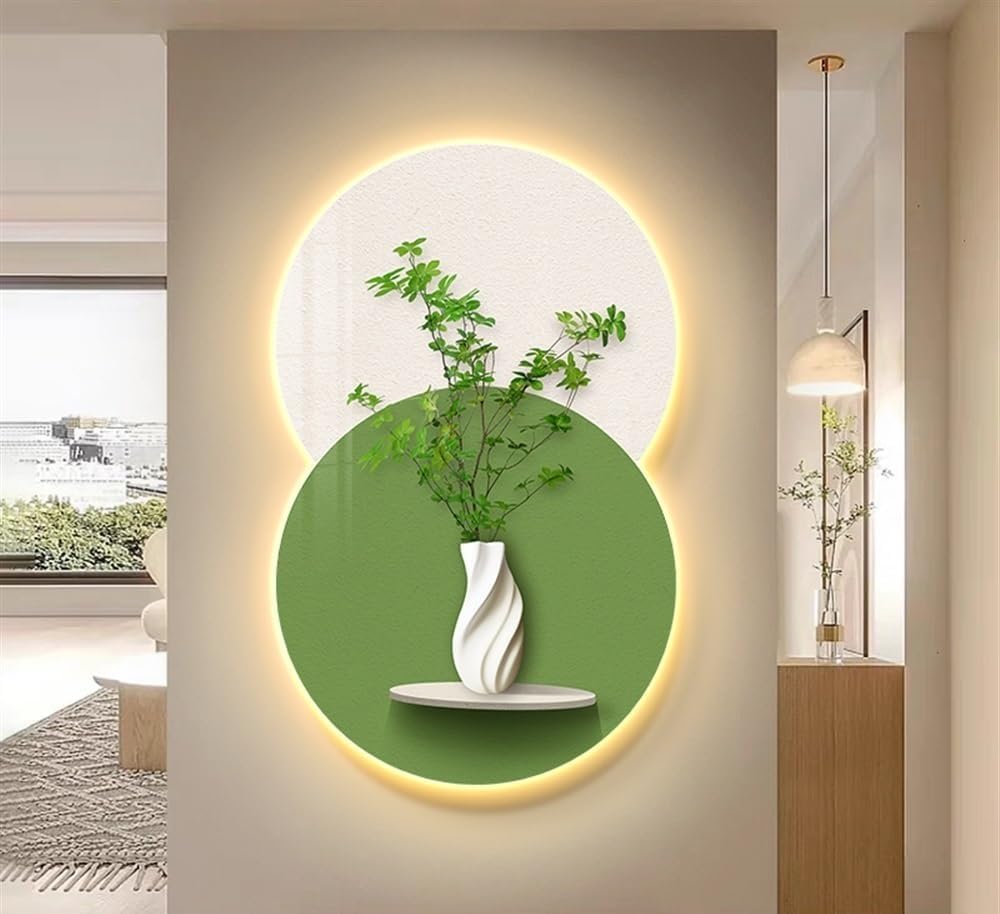 “Modern Glow: Illuminated Wall Art with Natural Accents”